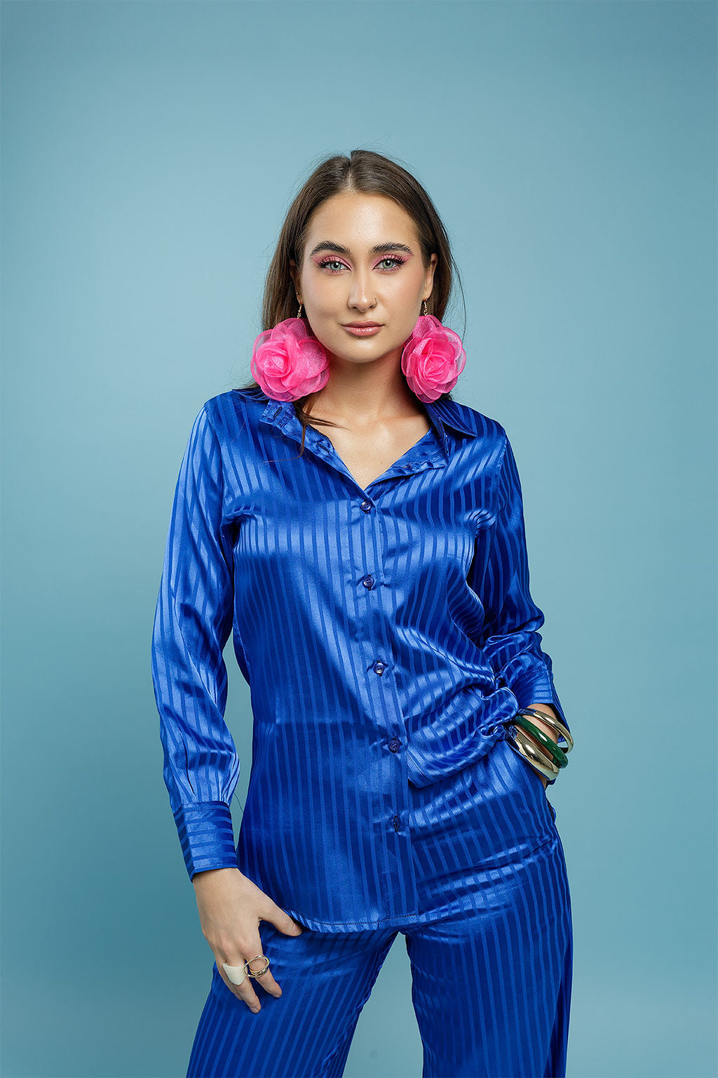 Selene is a two-piece set in a deep, dreamy emerald — featuring an oversized button-down shirt with front pockets and fully lined matching shorts with functional side pockets.
